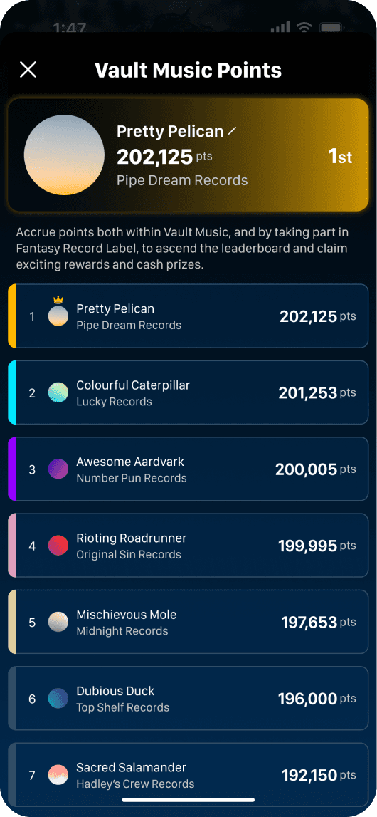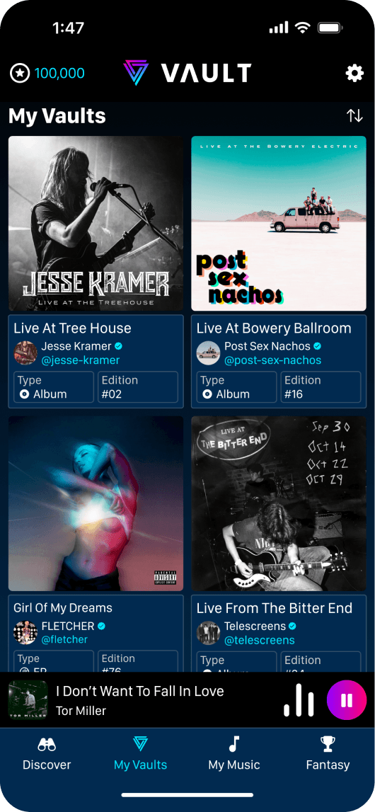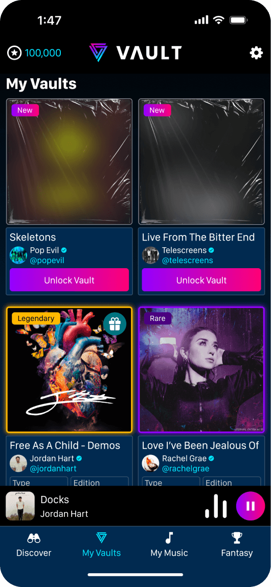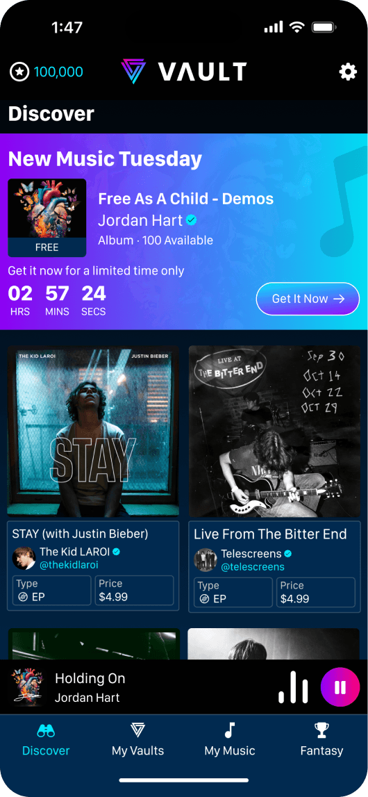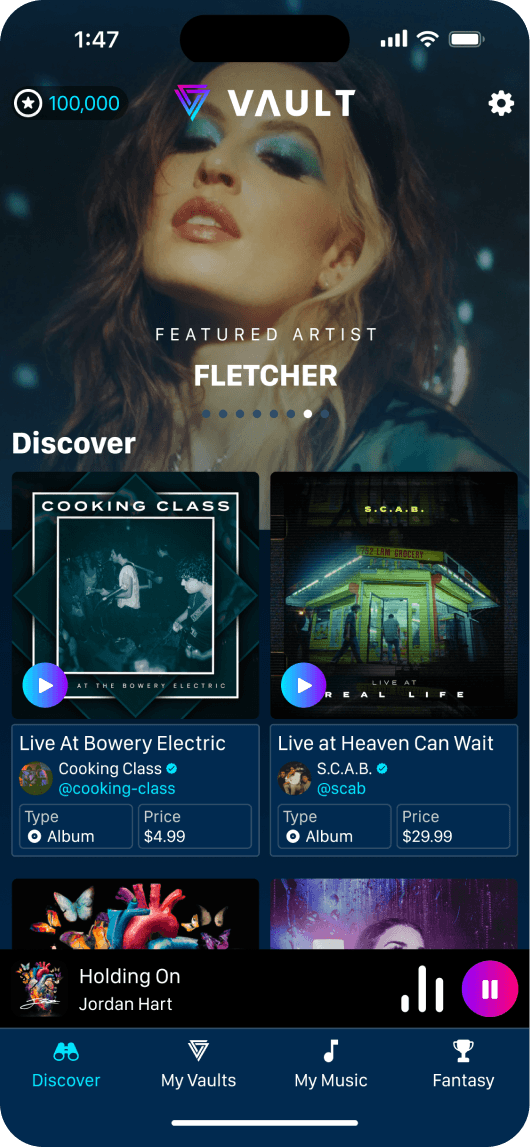 Vault Music was a cutting-edge Web3 app which empowered users to collect limited edition music. Featured in Billboard.
