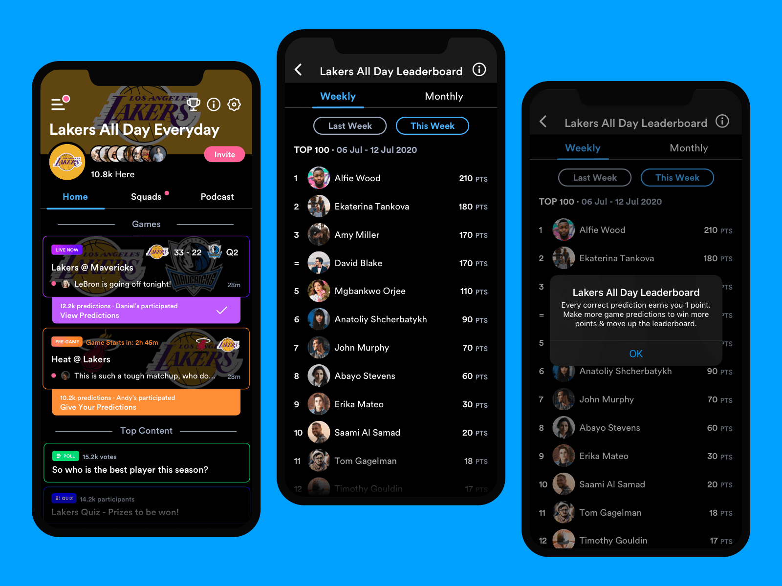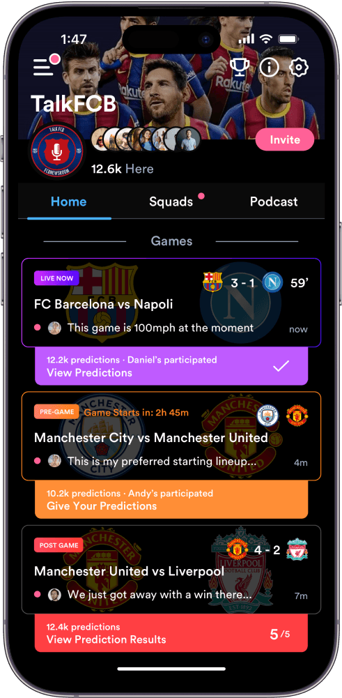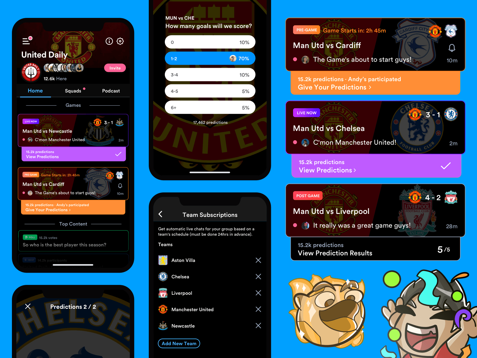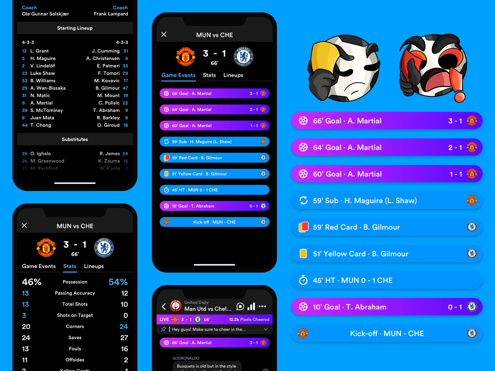 As the sole designer, I crafted and integrated features like chat, polls, league tables and sports stats among several others. I also handled the app's store presence, design, copy and feature releases. Users could access live scores, stats, make game predictions, participate in quizzes and enter jackpot competitions called Flick Picks, covering NFL, NBA and MLB. Sports influencers could earn money by keeping groups they created engaged, while fans could buy our in-app currency, called Pixels, to purchase emojis and cheer within groups.