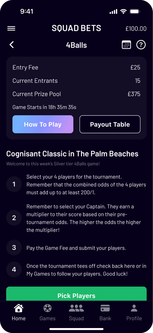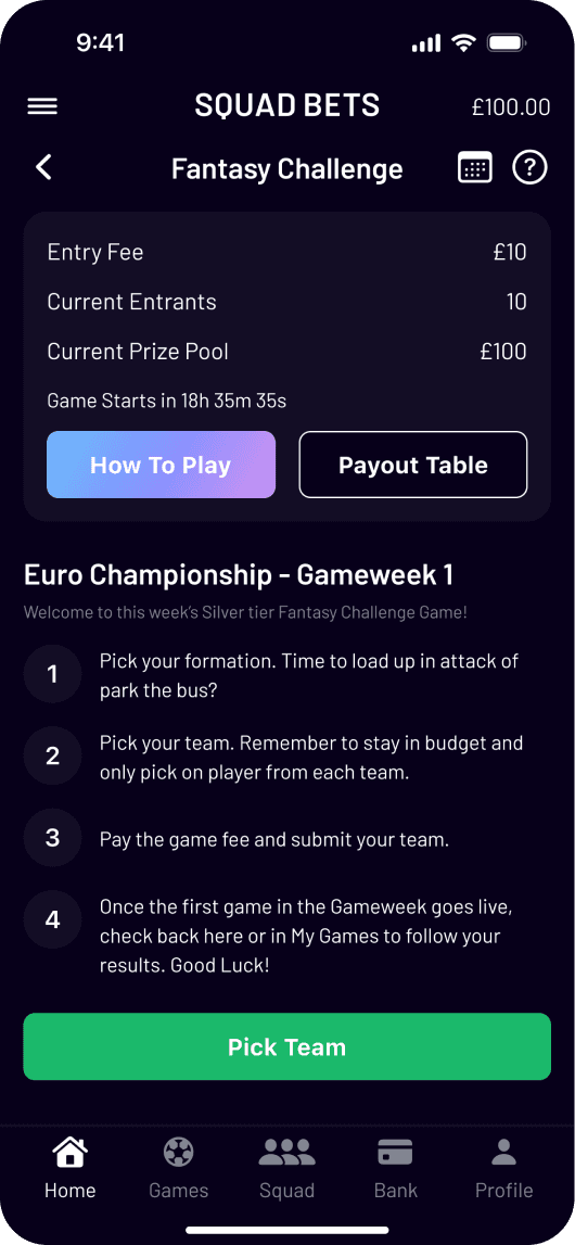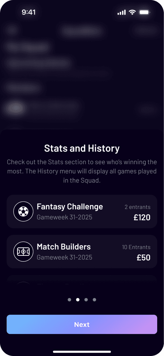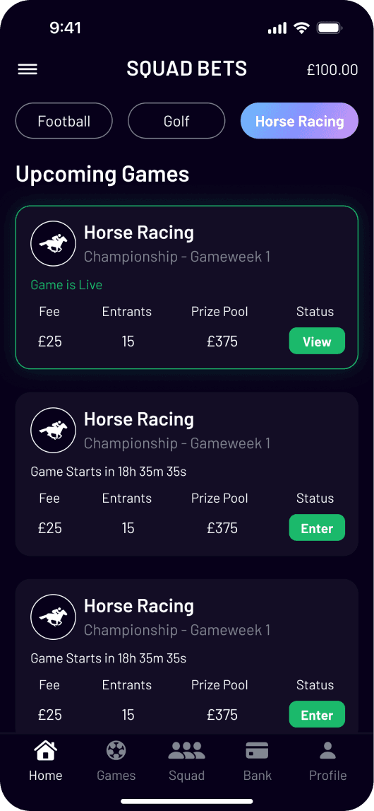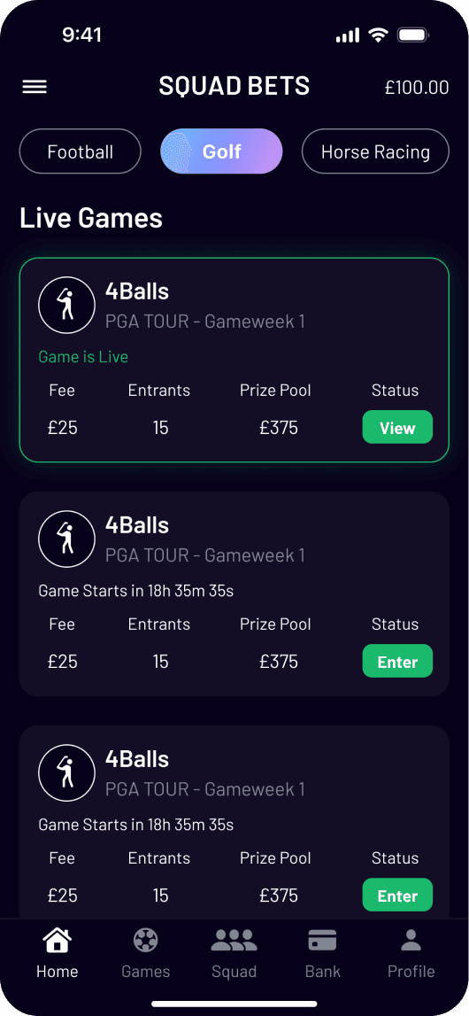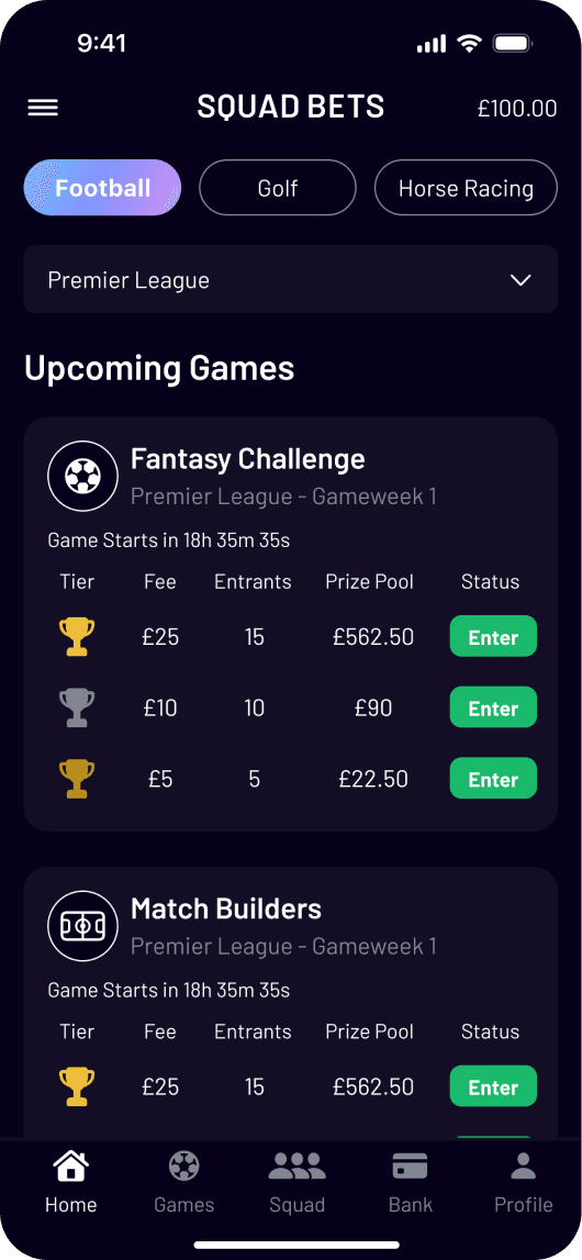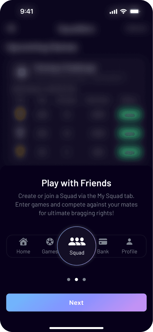 With games like Fantasy Challenge, Fixture Predictor, Match Builders; Squad Bets has football, golf, and racing all in one. As the founding designer, I worked with stakeholders to take this app from 0 to 1. The goal was simple, yet challenging, with features like private squads, leaderboards, and multipliers. Fast, frictionless, and made for mobile.