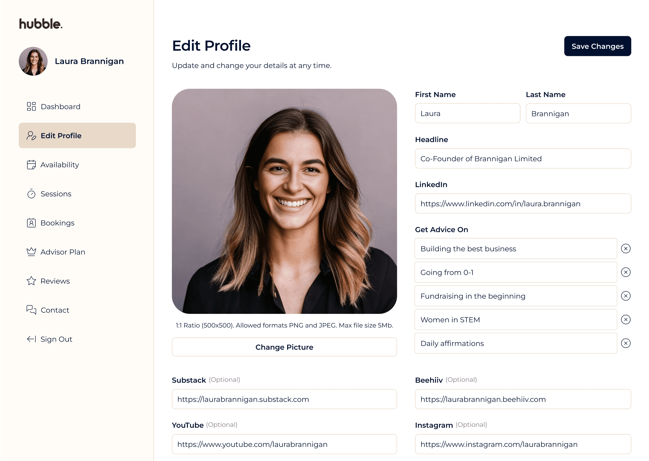 With over 11,000+ LinkedIn followers and a steady growth, Hubble is now gaining serious traction. As the founding designer behind the platform’s responsive web design and dashboard, I'm helping shape the product from the ground up. We've recently introduced Advisor Plans for ongoing mentorship, turning one-off calls into long-term relationships.