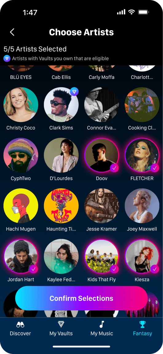 With the rise of Web3, I collaborated with former FanDuel founders to explore Solana-based music drops that gave artists fair pay and fans ownership of exclusive content. Artists released limited singles, EPs and albums alongside backstage videos, lyrics and rare fan rewards, with weekly New Music Tuesday drops boosting 7-day retention.