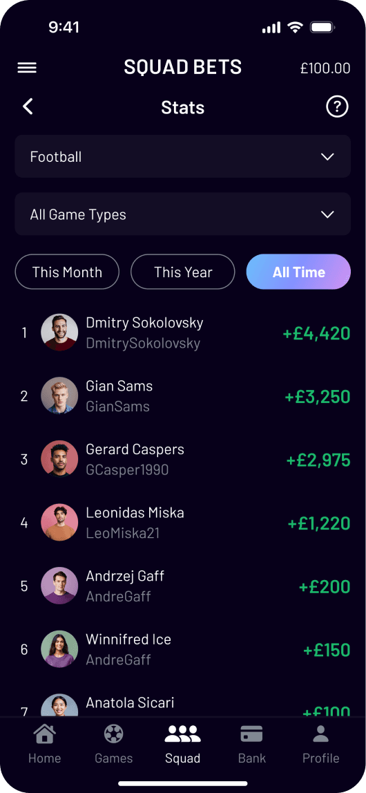The social sports betting app. Built for the banter, not the bookies. It’s the ultimate peer-to-peer betting app made for groups, turning those casual side bets into shared moments. No spreadsheets, no chasing payments, and no admin headaches. With competition, bragging rights, and a simple way to keep score.